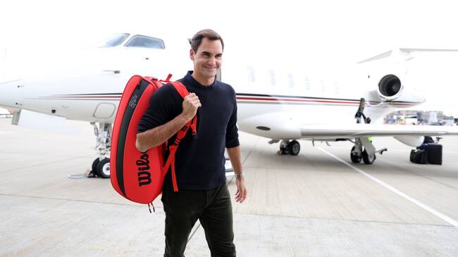 Roger Federer en su arribo a Londres para disputar la Laver Cup. / @LaverCup