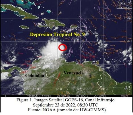 La Dirección General Marítima (Dimar), a través del Servicio Meteorológico Marino Nacional del Centro de Investigaciones Oceanográficas e hidrográficas del Caribe (CIOH informó que en el mar Caribe se ha configurado al noreste de la península de La Guajira, la Depresión Tropical No. 9.