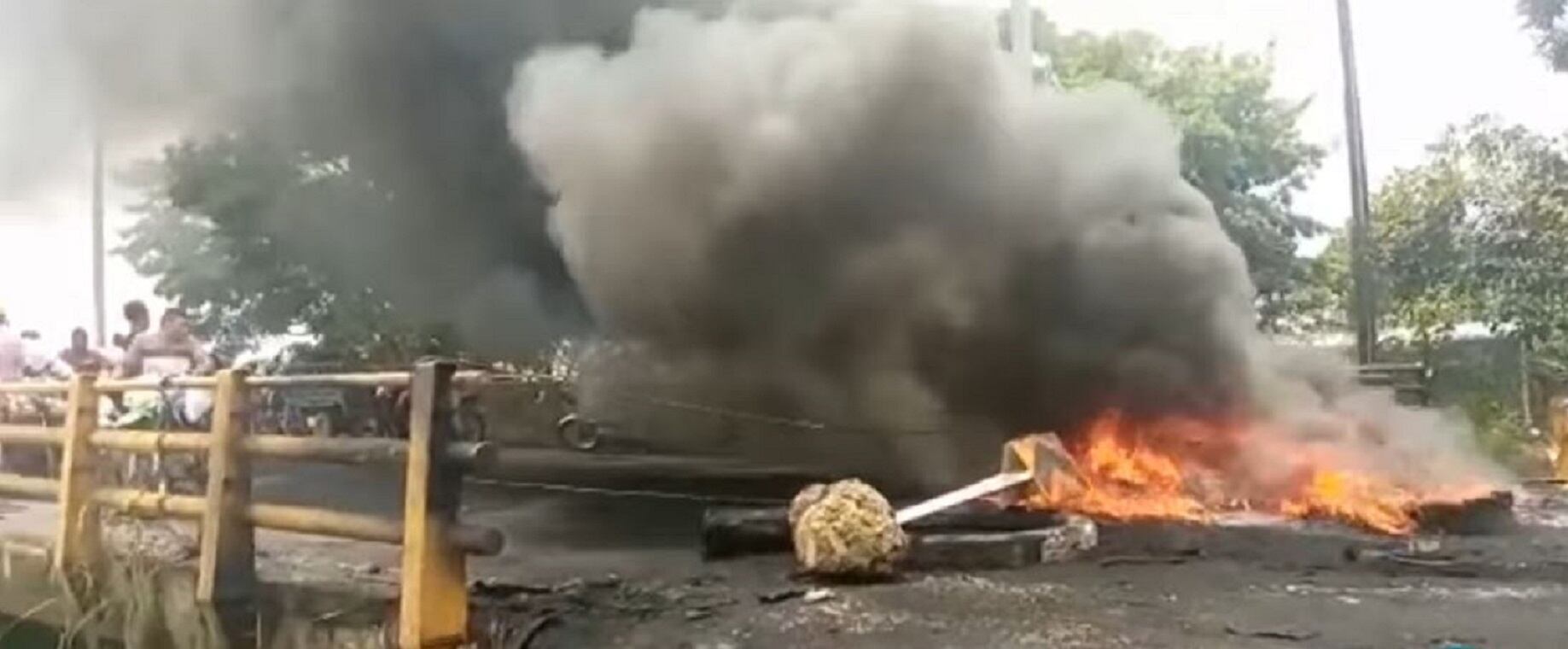 Por ello un grupo de personas atravesaron barricadas y quemaron llantas en la entrada al municipio impidiendo la movilidad de las personas. Mientras esto ocurre uno de los manifestantes explica las pretensiones de la protesta.