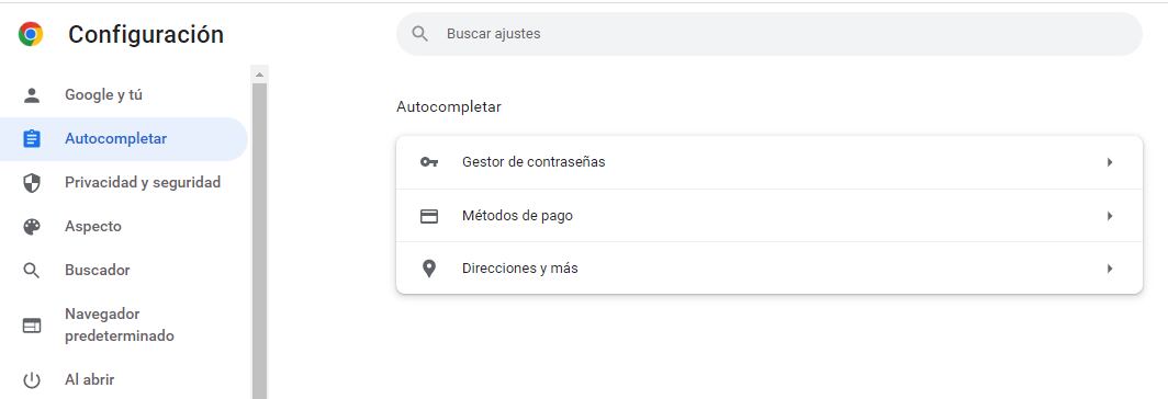 · Chrome: Configuración (ajustes) > Autocompletar > Gestor de contraseñas