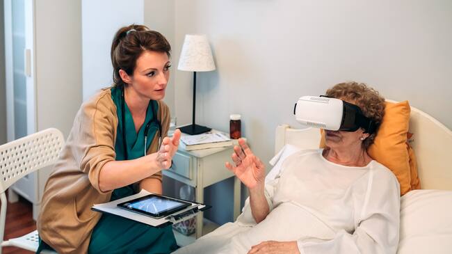 La experiencia de inmersión que las personas viven a través de la realidad virtual, así como algunas personas han experimentado la sensación de una caída por medio de esta simulación, los científicos proponen que se usen para distraer a los pacientes mientras son asistidos por los especialistas.