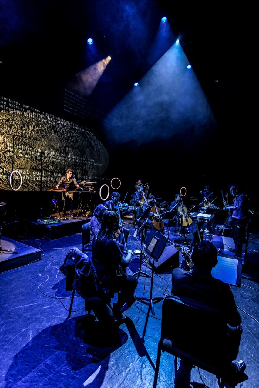 Marimbas y percusiones del Pacífico, arpas de los Llanos, bajos y aguabajos, componen esta experiencia, cuya puesta en escena se complementa con elementos de las artes digitales.