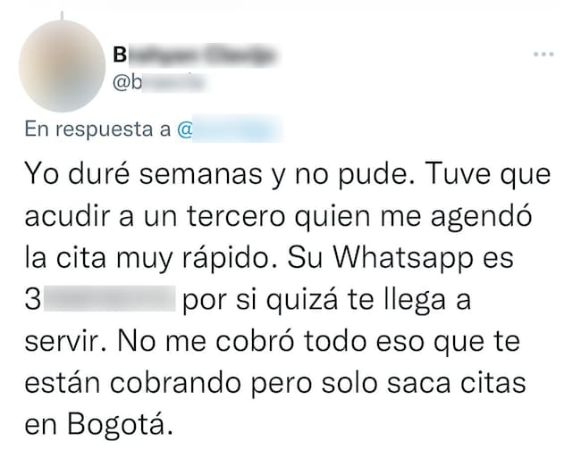 La página asegura que solicitar la cita es fácil y que no se necesitan intermediarios. La realidad es otra: una mafia de tramitadores, vaya uno a saber cómo, se adueña de los turnos y cada vez que un usuario se queja en redes sociales por la falta de citas, alguien le responde pidiéndole que se comunique por mensaje de texto con un número telefónico con la promesa de que le resolverán todo.