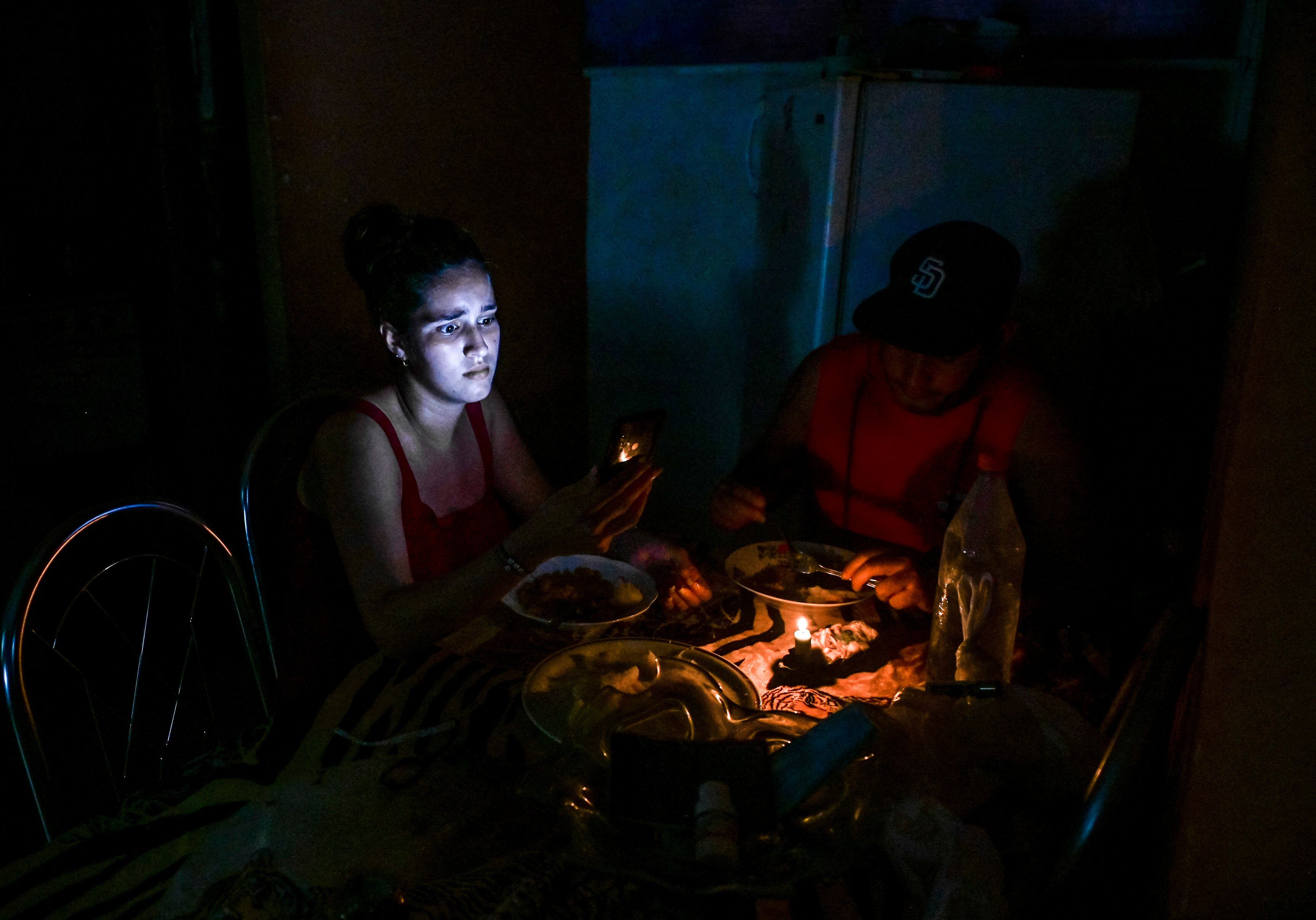 Cubanos utilizando velas y linternas en medio de un apagón. / YAMIL LAGE