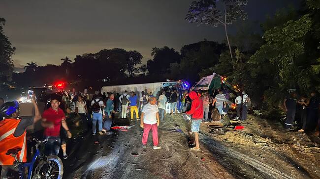 Un grave accidente de tránsito se presentó en el kilómetro 90 de la Troncal de Occidente en jurisdicción del municipio de Turbaco, norte de Bolívar, dejando un saldo de tres personas muertas y 14 heridas.