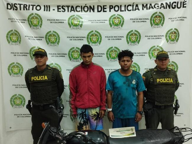 Después de que presuntamente hurtaron una motocicleta, miembros de la Policía pertenecientes al Modelo Nacional de Vigilancia por Cuadrantes en Magangué capturaron a los dos supuestos autores de este hecho, quienes fueron golpeados por la comunidad que quería hacer justicia por mano propia.
