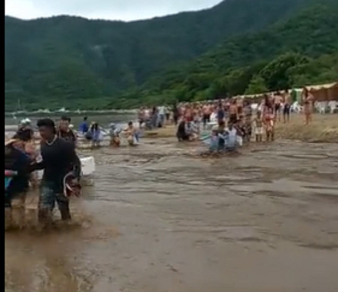 Así mismo, en el balneario de Bahía Concha una quebrada se desbordó y afectó a bañistas, también a residentes de algunas zonas aledañas a la playa, quienes tuvieron que sacar sus enseres de viviendas para que no se las llevaran la fuerte corriente.