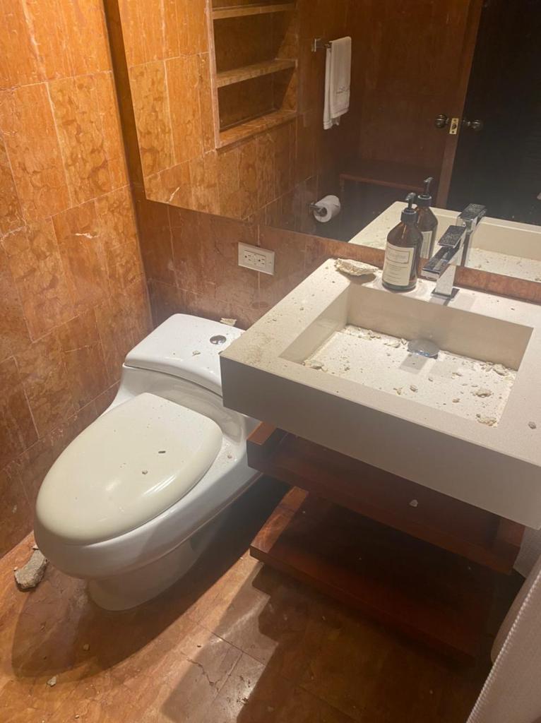 Acto seguido publicó unas fotos en las que se evidencian daños en las cortinas a las que hace referencia y Caracol Radió conoció otras fotografías que muestran el estado de deterioro en el que habrían quedado algunas de las habitaciones de las casas de la Presidencia.