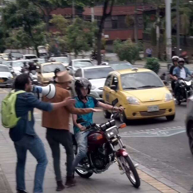 En medio de la estrategia; los concejales con un megáfono les decían a los transeúntes que respetaran para que no se subieran al andén, que no pisaran la cebra, intentaban que los motorizados no pasaran semáforos en rojo.