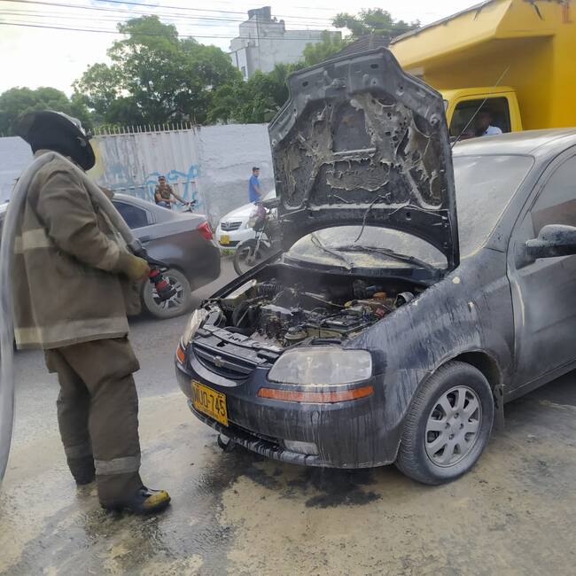 El Cuerpo Oficial de Bomberos de Cartagena reportó la atención de un conato de incendio en la intersección de la avenida Crisanto Luque hacia la subida del puente peatonal de un vehículo marca Chevrolet Aveo placas MWO 745.