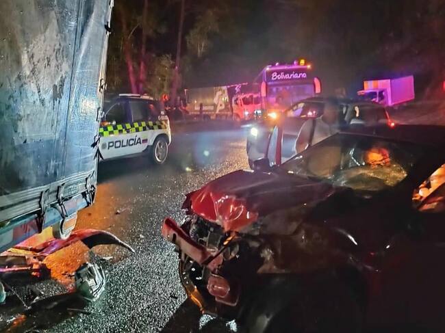 El incidente se presentó en el sector conocido como Quebrada La Mula, donde un vehículo particular y un camión colisionaron, por lo que además se presentó el cierre de la carretera por varios minutos.