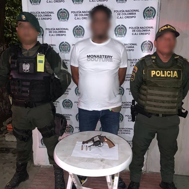En el barrio San Pedro y Libertad, policías del Grupo de Operaciones Especiales GOES, en planes de registro y control, lograron la captura de alias ‘El Gordo Marlene’, a quien le encontraron en su poder un arma de fuego tipo revólver calibre 38, con tres cartuchos sin percutir.