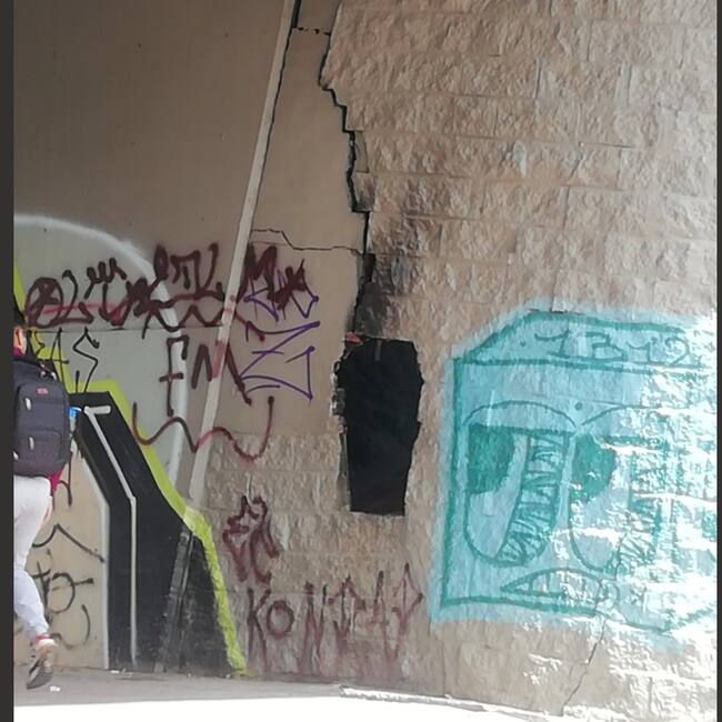 Piden además de la presencia por parte de la policía la intervención de IDU ya que este hueco puede ocasionar que se caiga este muro que seria la base principal del puente vehicular.