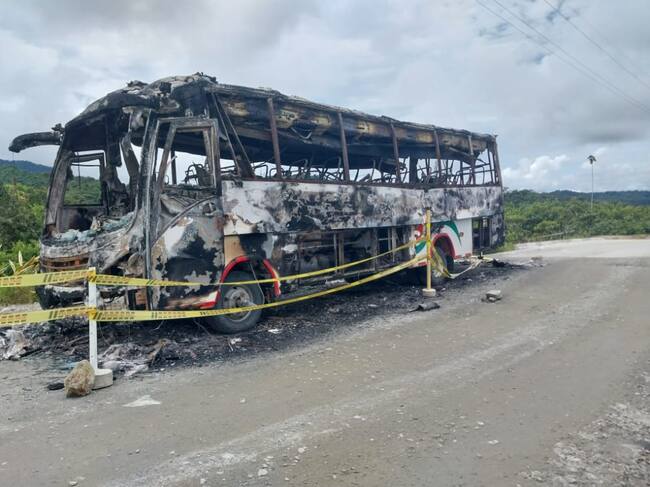 Diez personas, algunos fuertemente armados quemaron un bus en vía Medellín-Quibdó