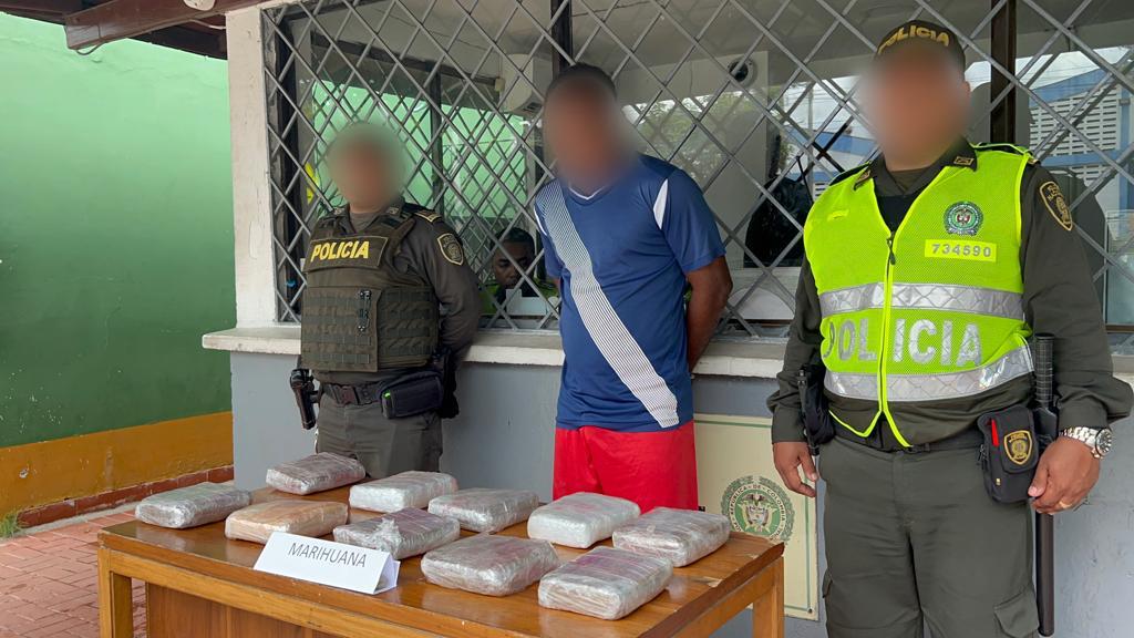 De manera inmediata se desplegó un operativo por Unidades del Modelo Nacional de Vigilancia Comunitaria por Cuadrantes adscritas al CAI Bosque, donde logran ubicar a estas personas la cual al notar la presencia de los uniformados intentó emprender la huida y es capturado en flagrancia con diez paquetes de marihuana prensada.
