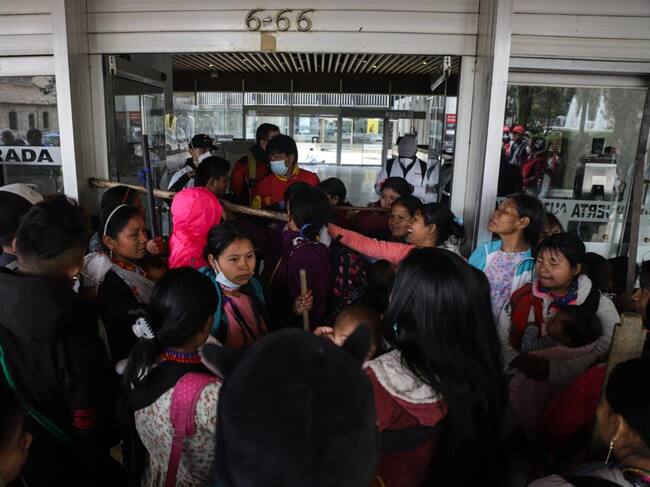 Desde las 10 de la mañana de este 19 de octubre más de 80 indígenas Emberá realizaron un plantón en el edificio Avianca, en la carrera Séptima con calle 12, por presuntos incumplimientos en la reubicación, vivienda colectiva y todos los acuerdos con la Secretaría de Gobierno tras su salida del Parque Nacional.