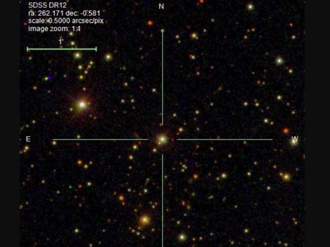 Las cruces marcan la ubicación del monstruoso agujero negro recién descubierto / SLOAN DIGITAL SKY SURVEY / S. CHAKRABART ET AL / Sebastian Carrasco