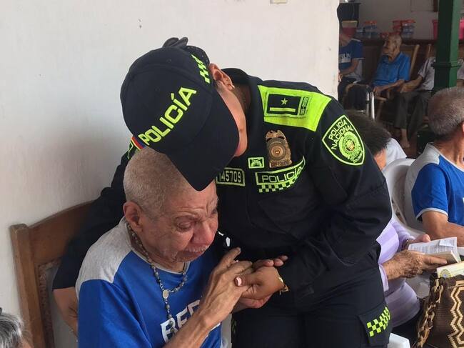 Los 60 abuelitos que conforman la fundación ‘La Casa del Recuerdo’ compartieron con los policiales un refrigerio.