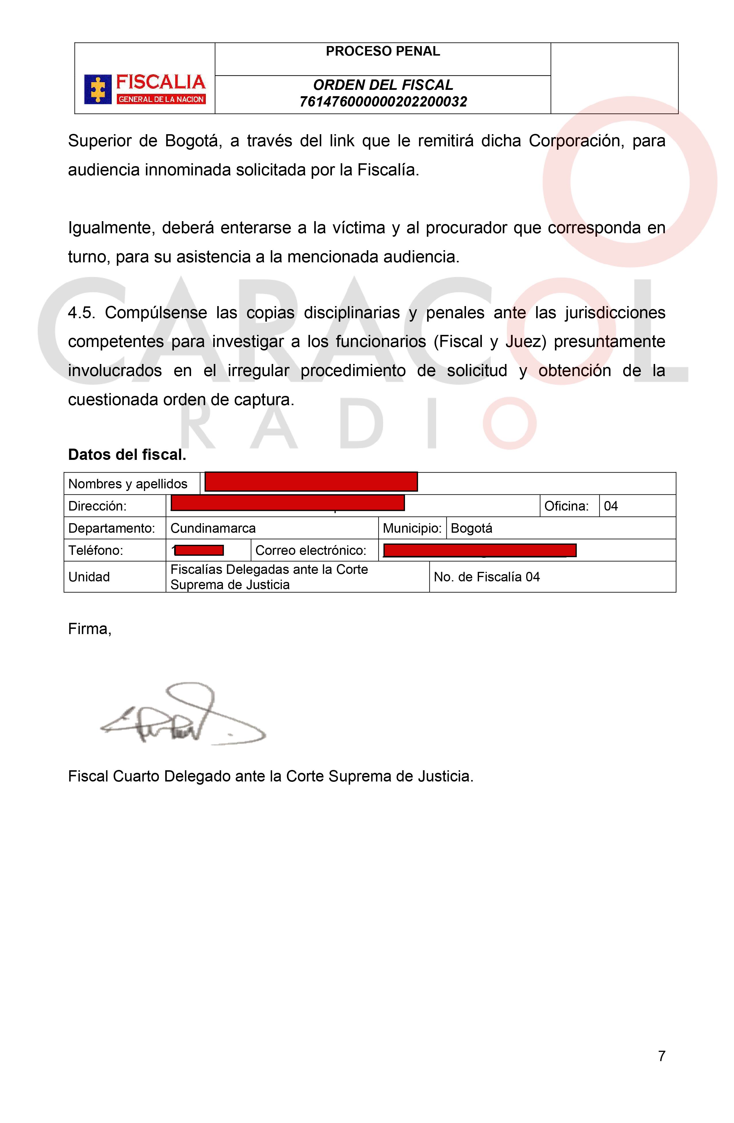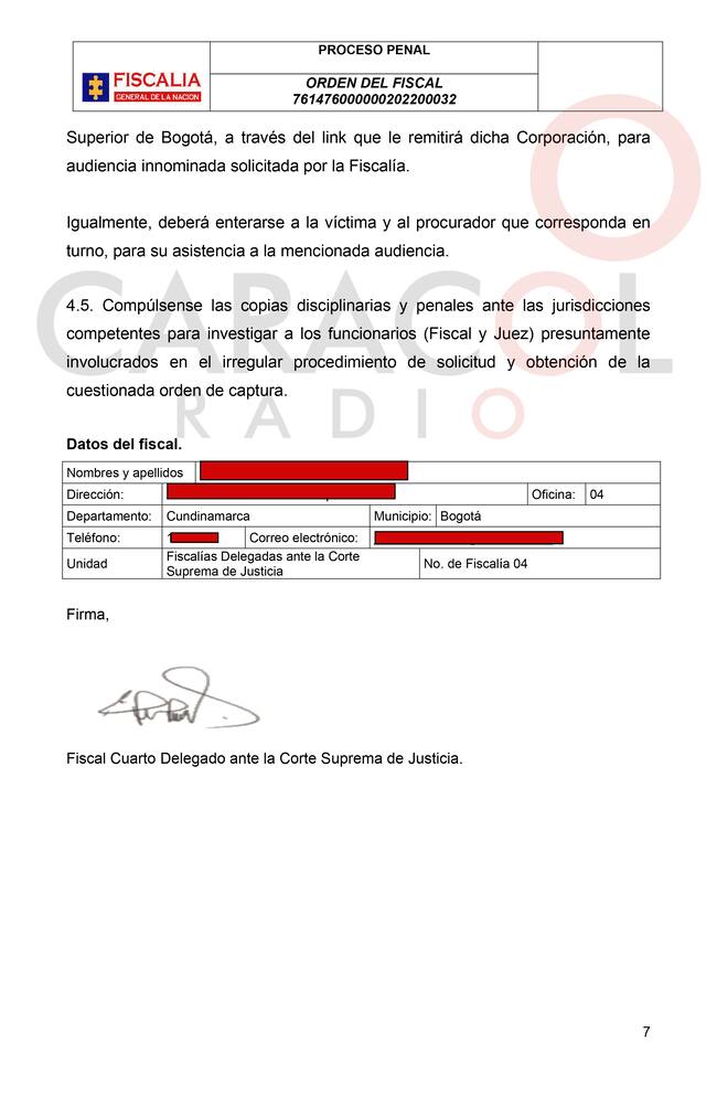 La Fiscalía delegada ante la Corte compulsó copias para que se investigue penal y disciplinariamente al fiscal y al juez que ordenaron esa captura.