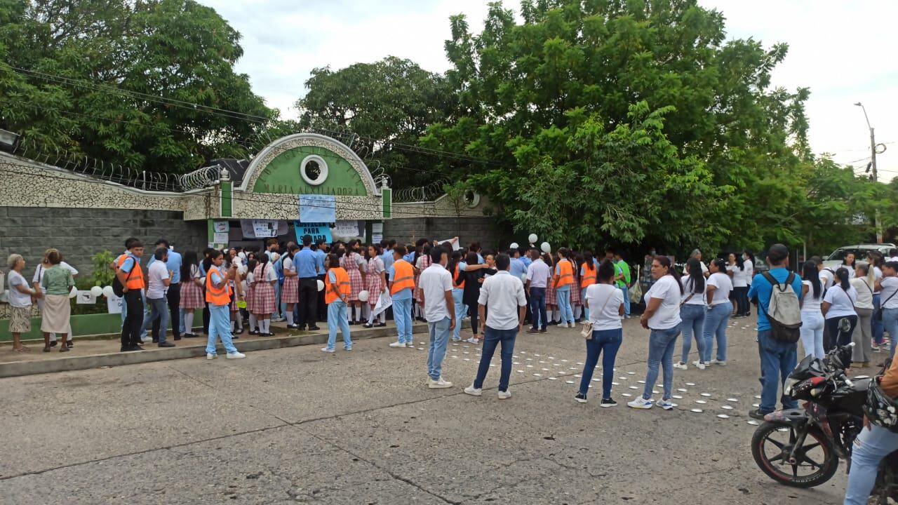 La mañana de este viernes, estudiantes, padres de familia y directivos, realizaron un plantón a las afueras del colegio distrital María Auxiliadora, exigiendo justicia por la muerte de la menor Samara Cerpa Avendaño, quien murió baleada dentro de un bus cuando se dirigía a su residencia después de salir de clases el pasado jueves.