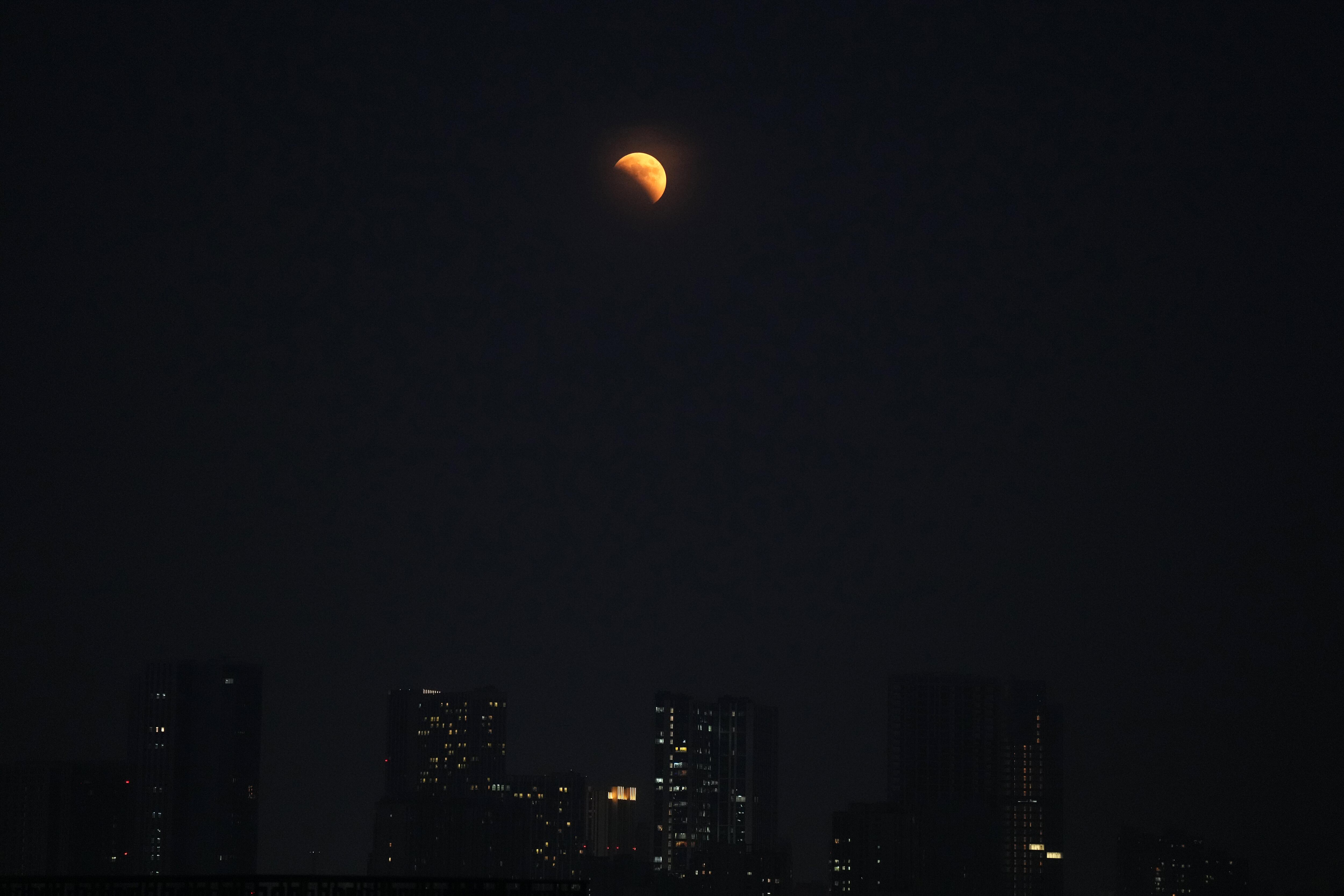 SYDNEY, AUSTRALIA - NOVEMBER 08: A lunar eclipse is seen in Sydney on November 08, 2022 in Sydney, Australia. Australians will experience the first visible total lunar eclipse of the year on Tuesday, with the eclipse also being visible from New Zealand. (Photo by Brook Mitchell/Getty Images) / Brook Mitchell
