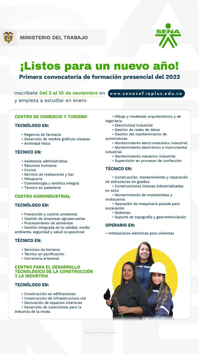 1200 cupos tienen disponibles el Sena Regional Quindío para formación en técnicos y tecnólogos que iniciarán sus clases en enero de 2023, el plazo de inscripción gratuita es hasta este jueves 10 de noviembre.