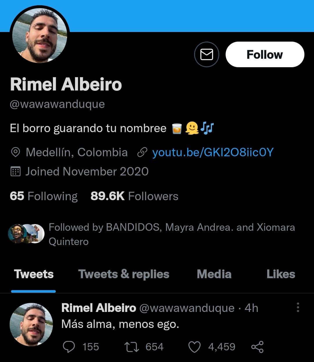 Por su parte, el cantante cambió su nombre de usuario por “Rímel Albeiro” haciendo entender que se sintió aludido con las palabras de su expareja.