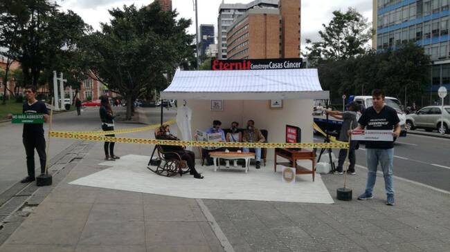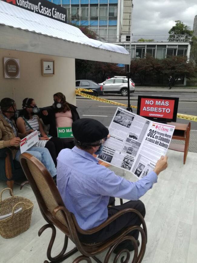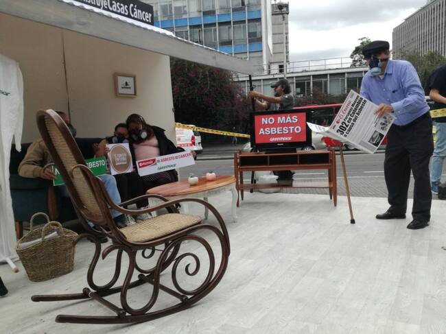 Con una manifestación pacífica en el Parque Nacional, la organización Greenpeace pone en conocimiento público los problemas del asbesto en los hogares. (Caracol Radio)