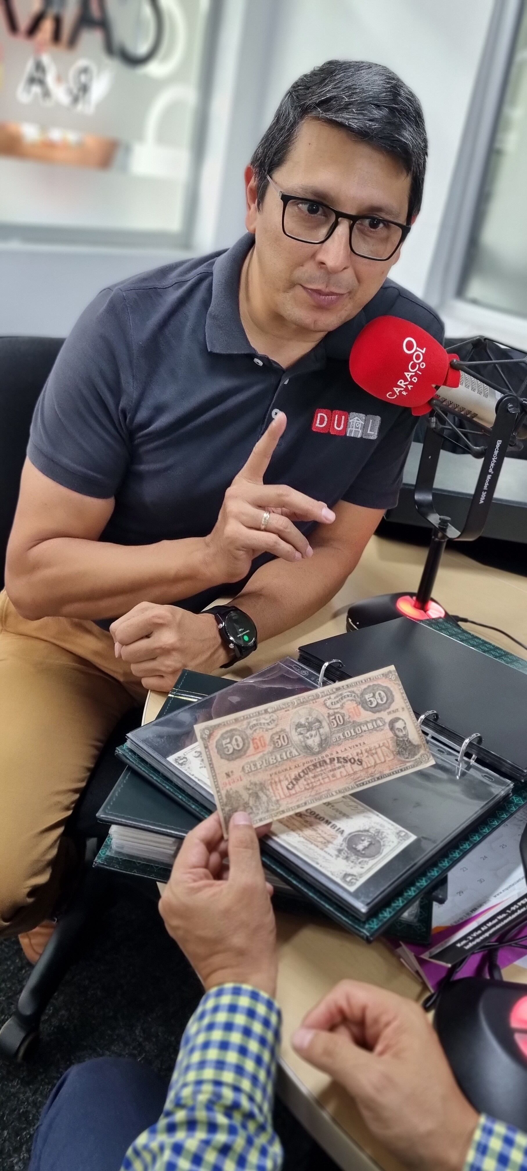 Vivió en Bogotá durante un buen tiempo. Fue emprendedor antes de retornar a Bucaramanga reclutado por quien considera su padrino y maestro, Juan Carlos Hederich. Habla de monedas extrañas; de las macuquinas y de la historia de las piezas que llevó al estudio de Caracol Radio.