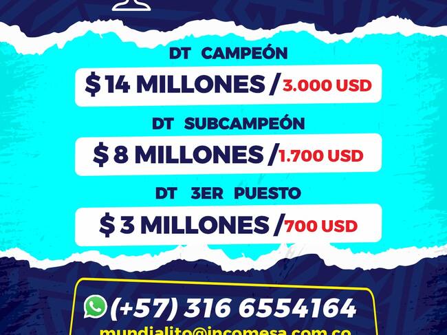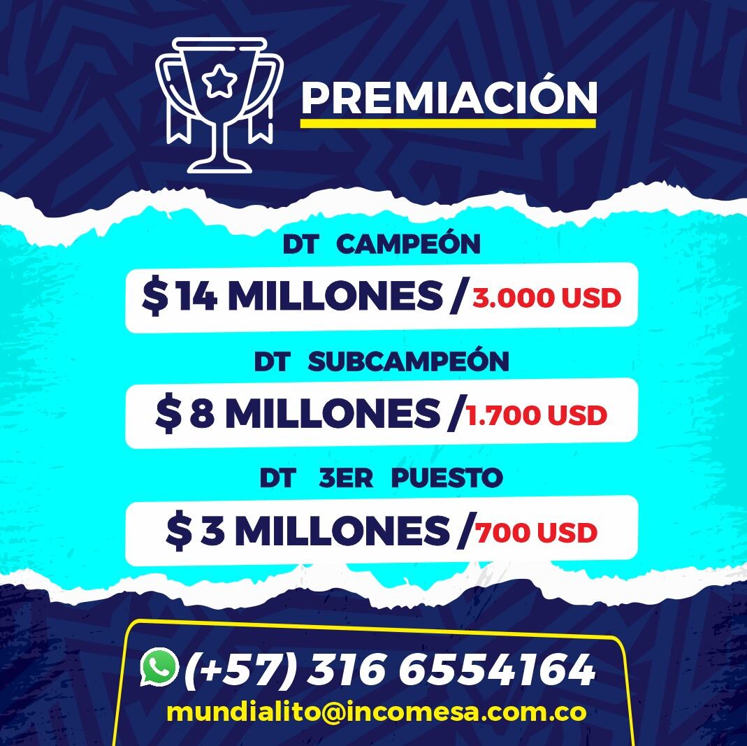 $14 millones para el DT campeón + $8 millones para el DT subcampeón + $3 millones para el DT que ocupe el 3er puesto.