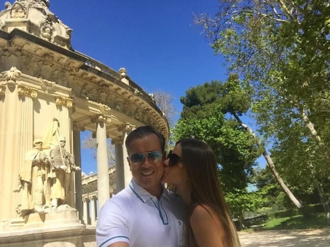 Los esposos aprovecharon su paso en España para apoyar al jugador colombiano James Rodríguez durante un partido del Real Madrid. / Facebook/Jeabello