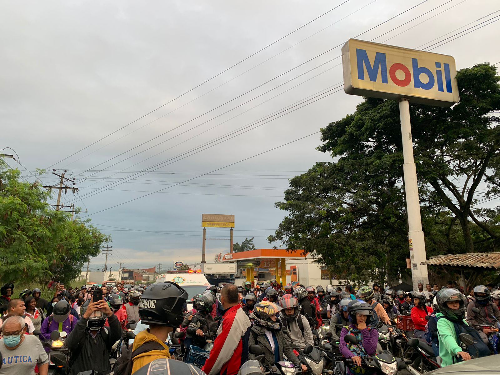 La protesta se concentra en el puente de Juanchito, un sitio neurálgico para la movilización entre los municipios de Cali y Candelaria y además comunica con la central de abastecimiento de alimentos del Valle, Cavasa.