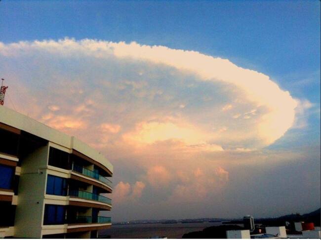 Una nube de forma circular sorprendió a los cartageneros en la tarde del jueves. (Facebook: Denuncias Cartagena)