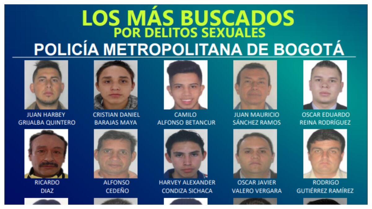 Cartel de los 19 más buscados por delitos sexuales en Bogotá