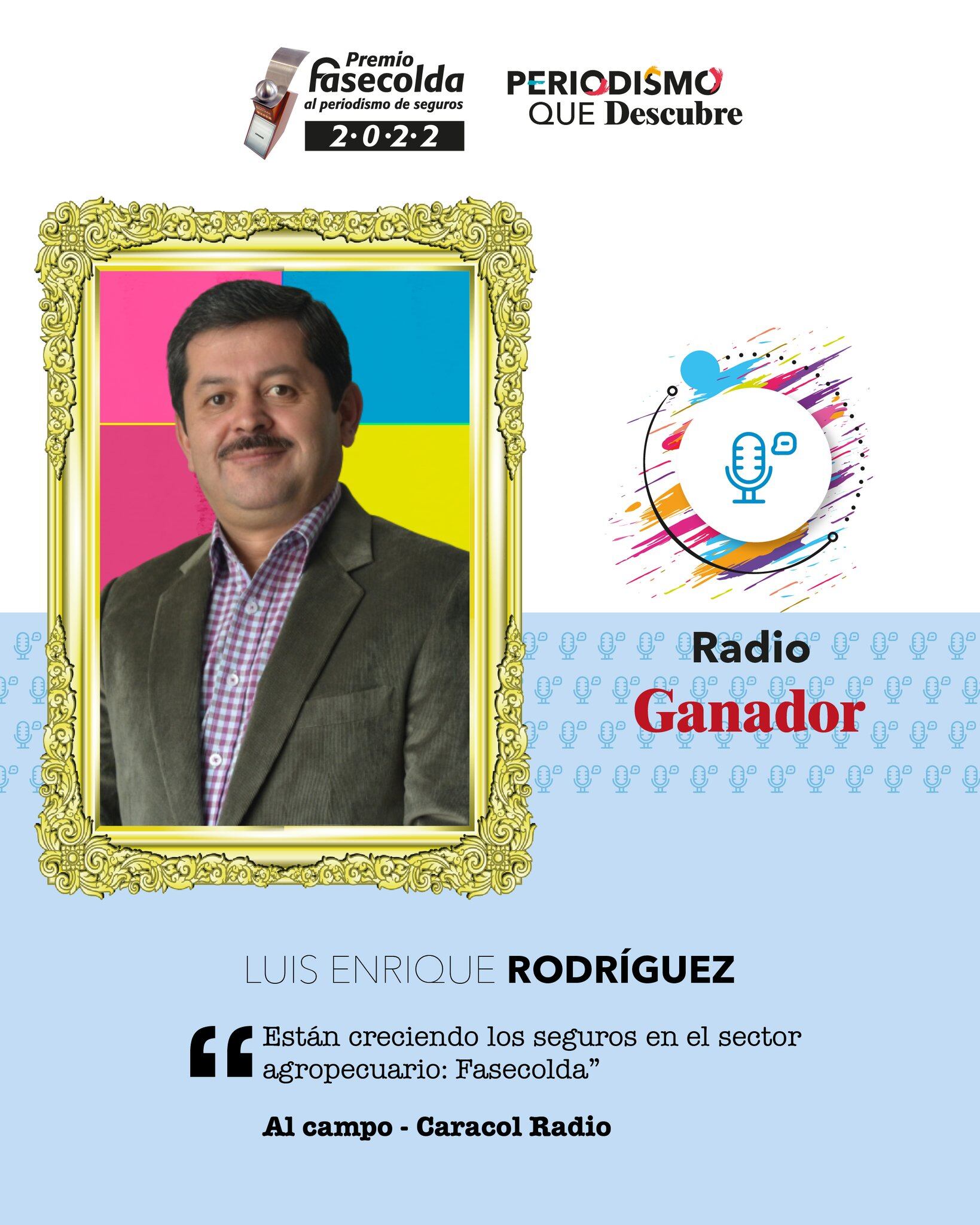 Luis Enrique Rodríguez se desempeña actualmente como director adjunto del Servicio Informativo de Caracol Radio desde 2009. Asimismo, es conductor del programa Al Campo desde 2018. Se incorporó a Caracol Radio en 1993 y trabajó antes en Todelar Radio, DPA, Notimex. Por otra parte, es de los periodistas que cubrió la tragedia de Armero, el Palacio de Justicia y más.