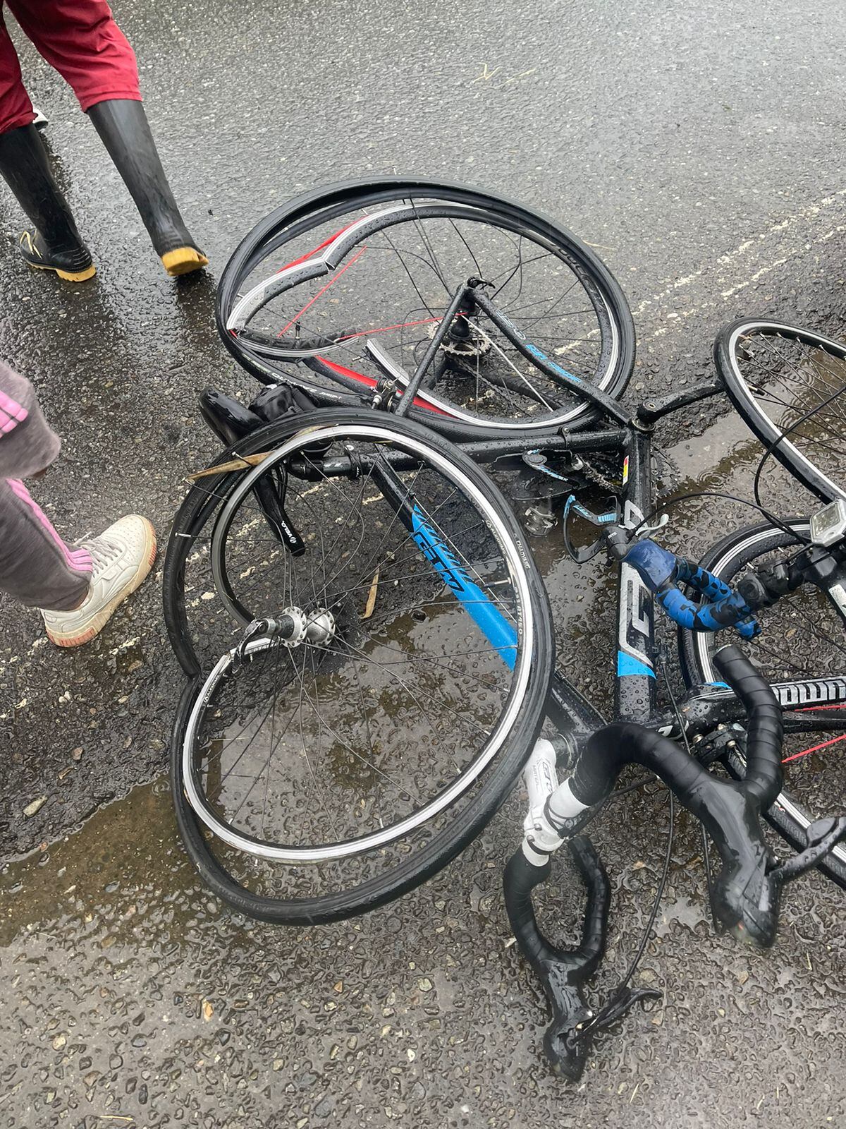 Le piden a la persona que provocó el accidente que responda tanto por la salud de los ciclistas como por las pérdidas materiales, ya que las tres bicicletas quedaron destruidas.