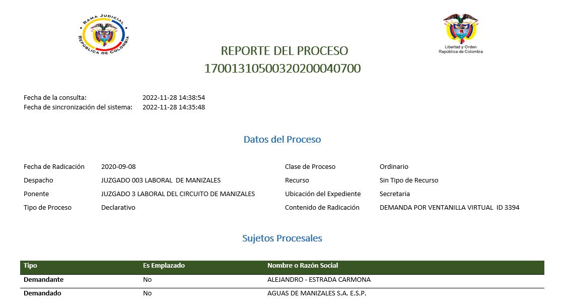 DEMANDA CONTRA AGUAS DE MANIZALES