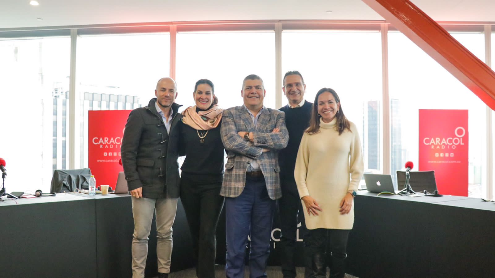 Jorge Espinosa, Vanessa de la Torre, Gustavo Gómez, Juan Carlos Mora Uribe -presidente de Bancolombia- y Diana Giraldo / Caracol Radio