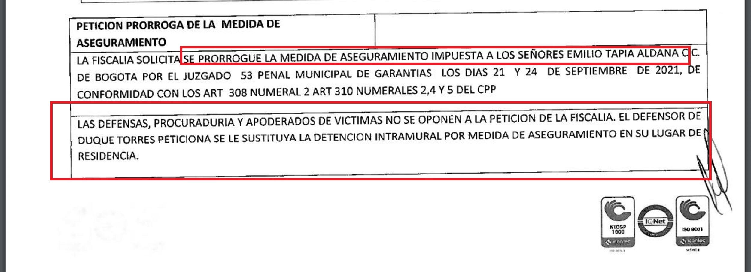 Se conoció también, que Luis Fernando Duque está negociando un preacuerdo con la Fiscalía y está buscando una pena entre los cuatro y cinco años de prisión.