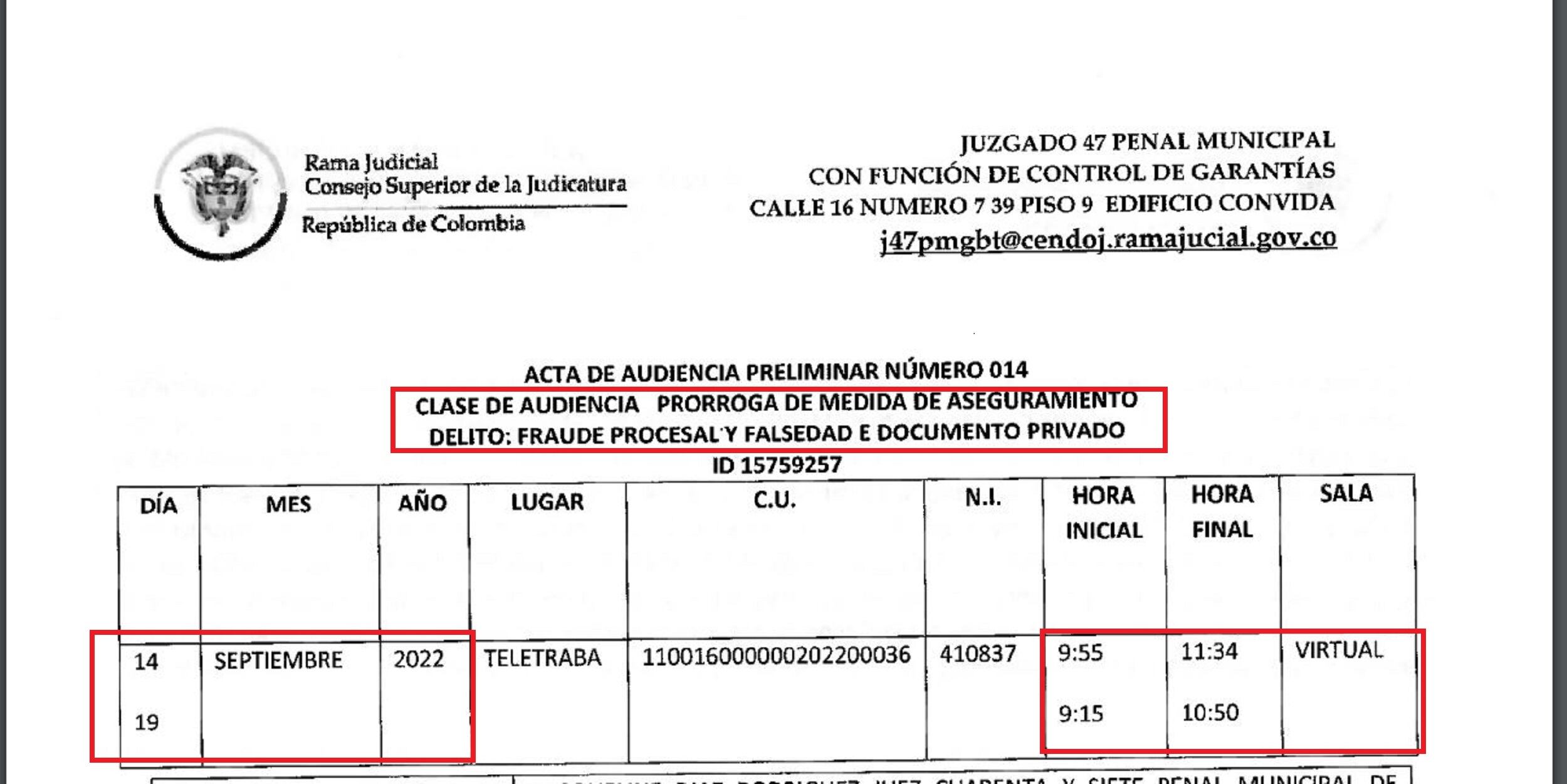 Acta del jugado que otorgó detención domiciliaria a Luis Fernando Duque, uno de los cerebros del caso Centros Poblados