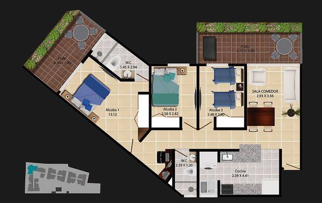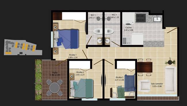 Este conjunto residencial consta de modernos apartamentos con vista al mar, ubicados estratégicamente en el Barrio Vista Hermosa, en Santa Marta, entre la vía al Mar y la vía alterna, a 10 minutos del Centro Comercial Zazue y 15 minutos del Aeropuerto Simón Bolívar de Santa Marta.