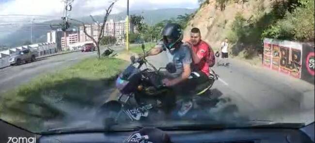 Un fuerte choque entre una motocicleta con dos hombres a bordo y un automóvil es lo que se evidencia en las imágenes. El carro, modelo Chevrolet Spark se movilizaba por el carril izquierdo, mientras que los motorizados por el derecho. Cuando los motorizados se disponían a cruzar por el carril donde se encontraba transitando el auto, ocurrió el fuerte accidente.