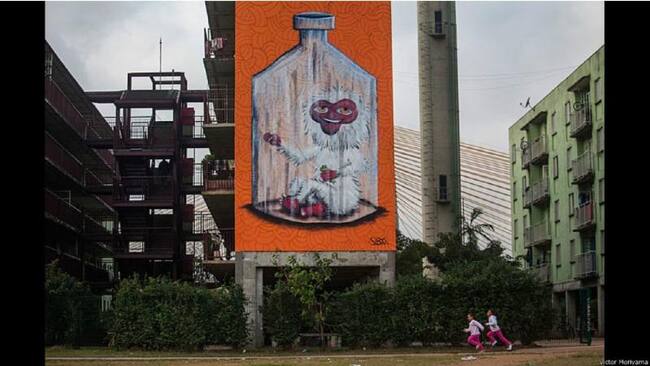 En la comisaría, Chivitz, Ribeiro y otros empezaron a pensar en cómo hacer que su arte no fuera visto como un crimen. Fue así que nació el proyecto Museo Abierto de Arte Urbano. En la imagen, un grafiti de Binho Ribeiro