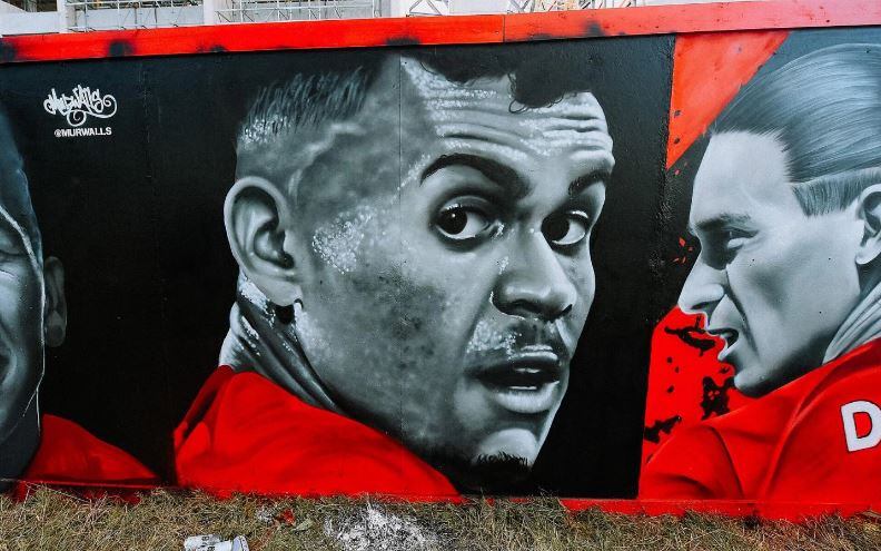 Luis Díaz, retratado en un mural de Anfield / liverpoolfc.com.