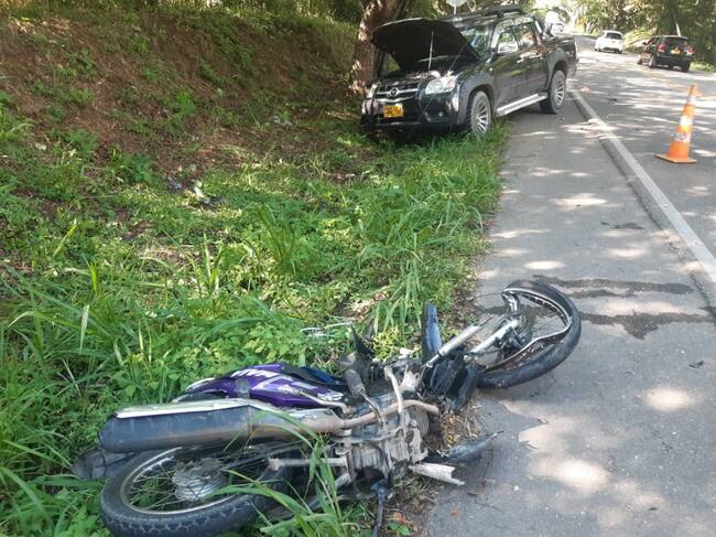 Y una motocicleta de placa MAN58D, conducida por el uniformado del Ejército; Brayan Stiven Camargo Trujillo quien falleció en el lugar de los hechos.