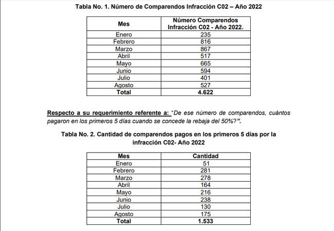 La Dirección de Tránsito aseguró que a septiembre de este año había aplicado 4 mil 622 comparendos por mal parqueo. La siguiente pregunta de los reporteros de Caracol Radio fue por el número de comparendos que se pagaron durante los primeros 5 días cuando se concede la rebaja del 50%.