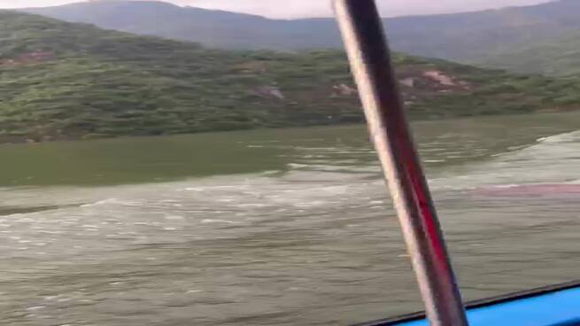 Un grupo de personas que navegaba por el embalse se encontraron por primera vez con un majestuoso puma que nadaba en el lugar.