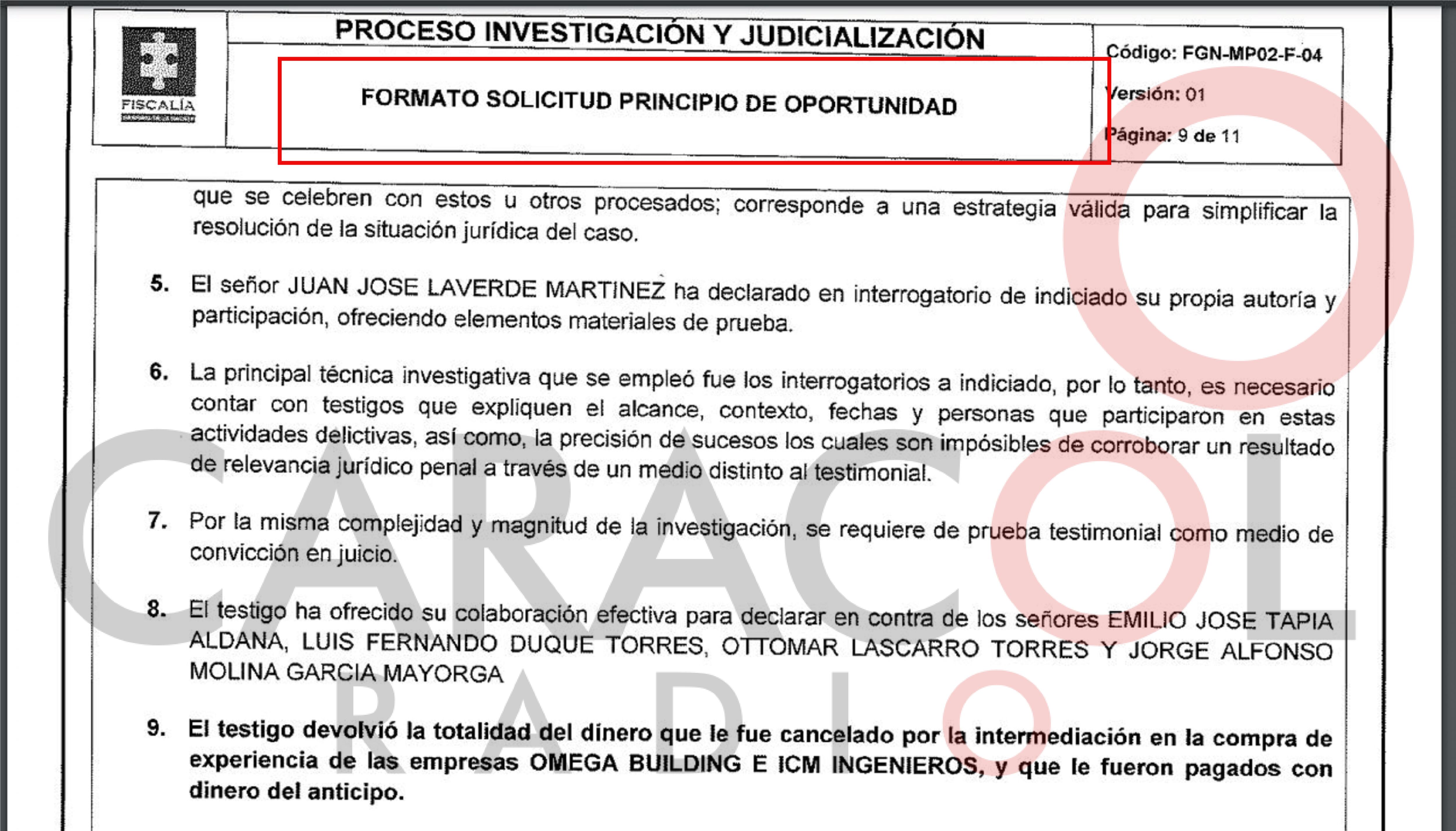 Solicitud de principio de oportunidad de Juan José Laverde en la Fiscalía