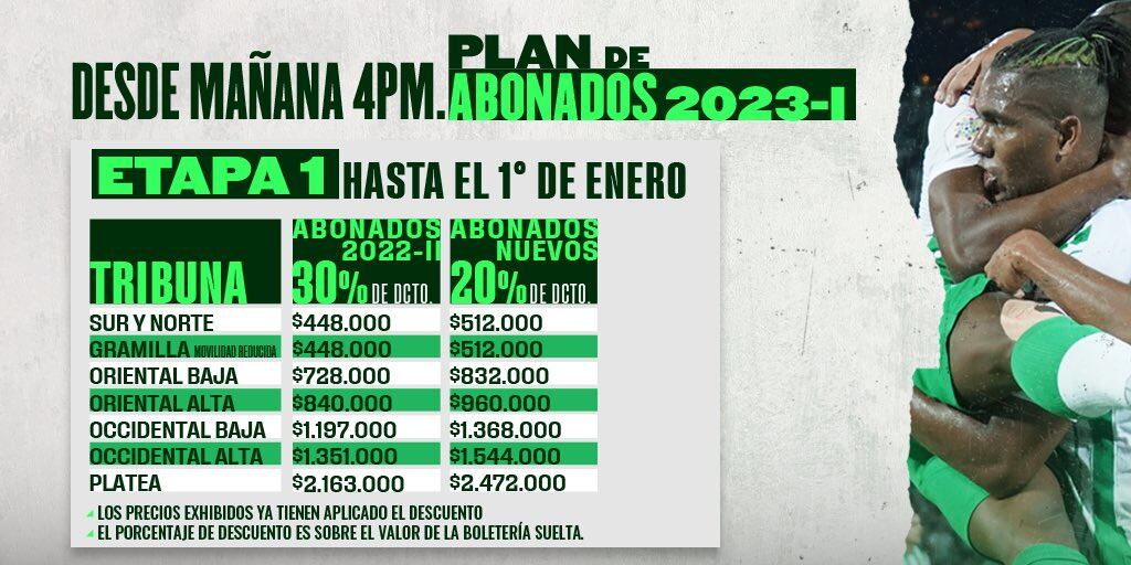 Los precios superan en un 100% lo pagado para el segundo semestre de 2022. Caracol Radio trató de obtener la versión de Atlético Nacional y aún no ha recibido respuesta del club.