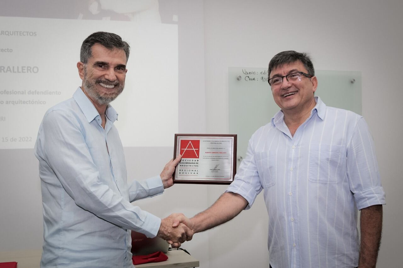 El recibimiento fue entregado este jueves 15 de diciembre en el Edificio Grupo Área por parte de la Sociedad Colombiana de Arquitectos seccional Bolívar. Por todo lo anterior, Alberto Samudio Trallero es sinónimo de profesionalismo y de respeto por la historia y pocas veces en un nombre coinciden tantos valores.